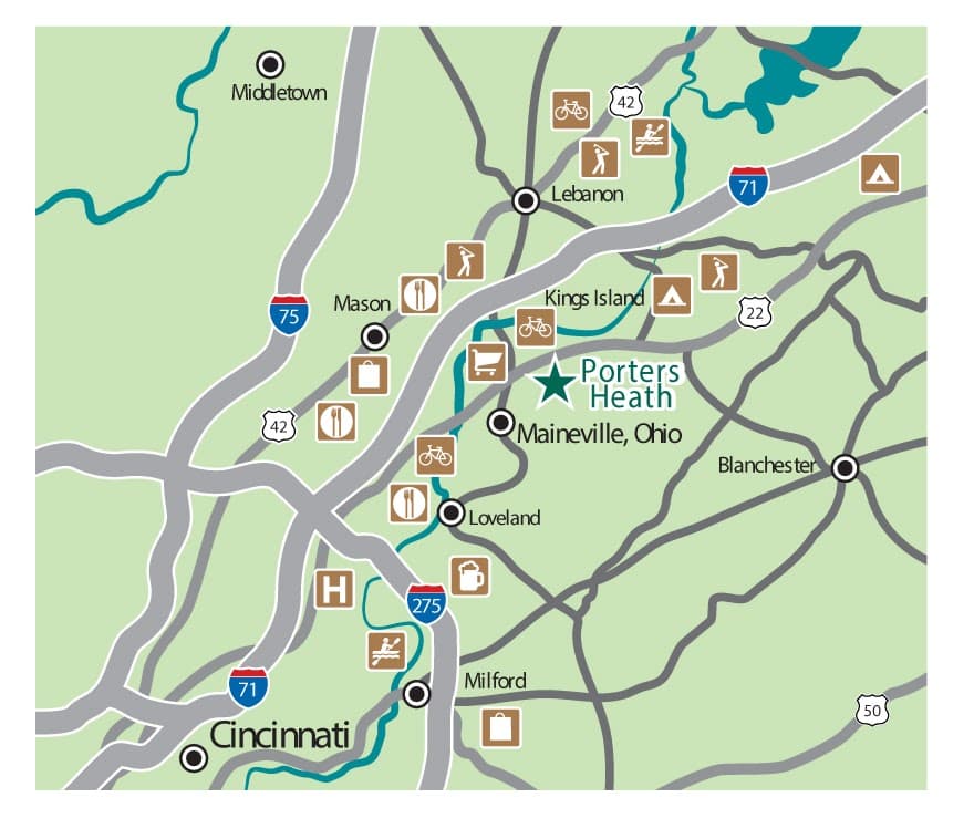 Porters Heath offers the charm of the Little Miami Valley and Warren County countryside. Convenient to shopping and dining. Only 30 minutes from downtown Cincinnati.